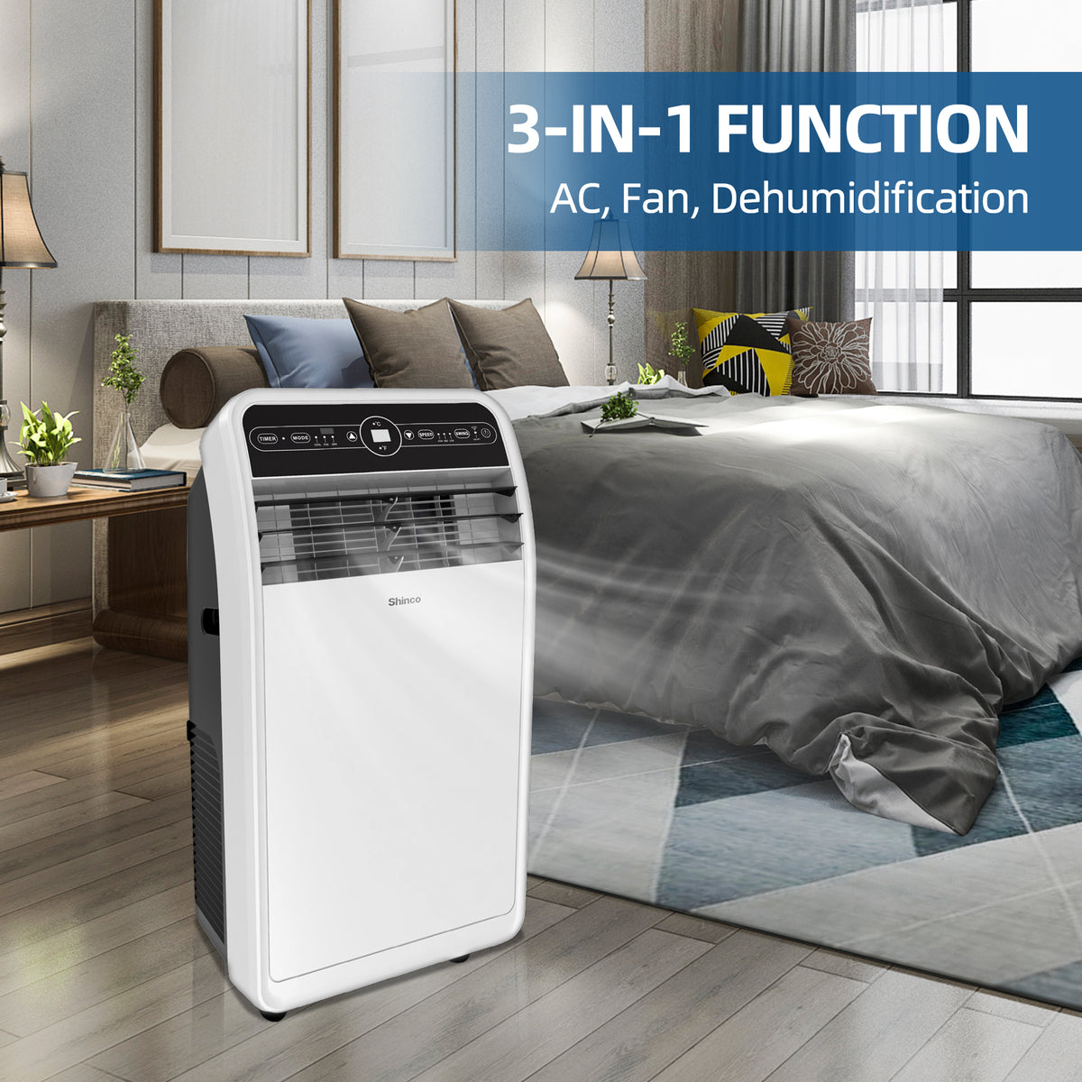 - Move & Use with Ease: 4 smooth-rolling universal casters and recessed handles let you glide it from room to room, while the adjustable air outlet grille directs airflow exactly where you need it. Plus, the LED digital display and remote control (23 ft. range) put comfort at your fingertips.
