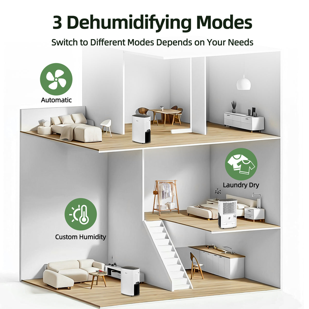 - 【Upgraded Smart Features】Sleep Mode, Auto-Defrost, Self-Dry, Continuous Run, 24-Hour Timer, Automatic Shutoff, 2 Fan Variable Speeds, Adjustable Humidistat, Child-Lock, and Bucket Full Indicator for optimal performance with minimal effort.