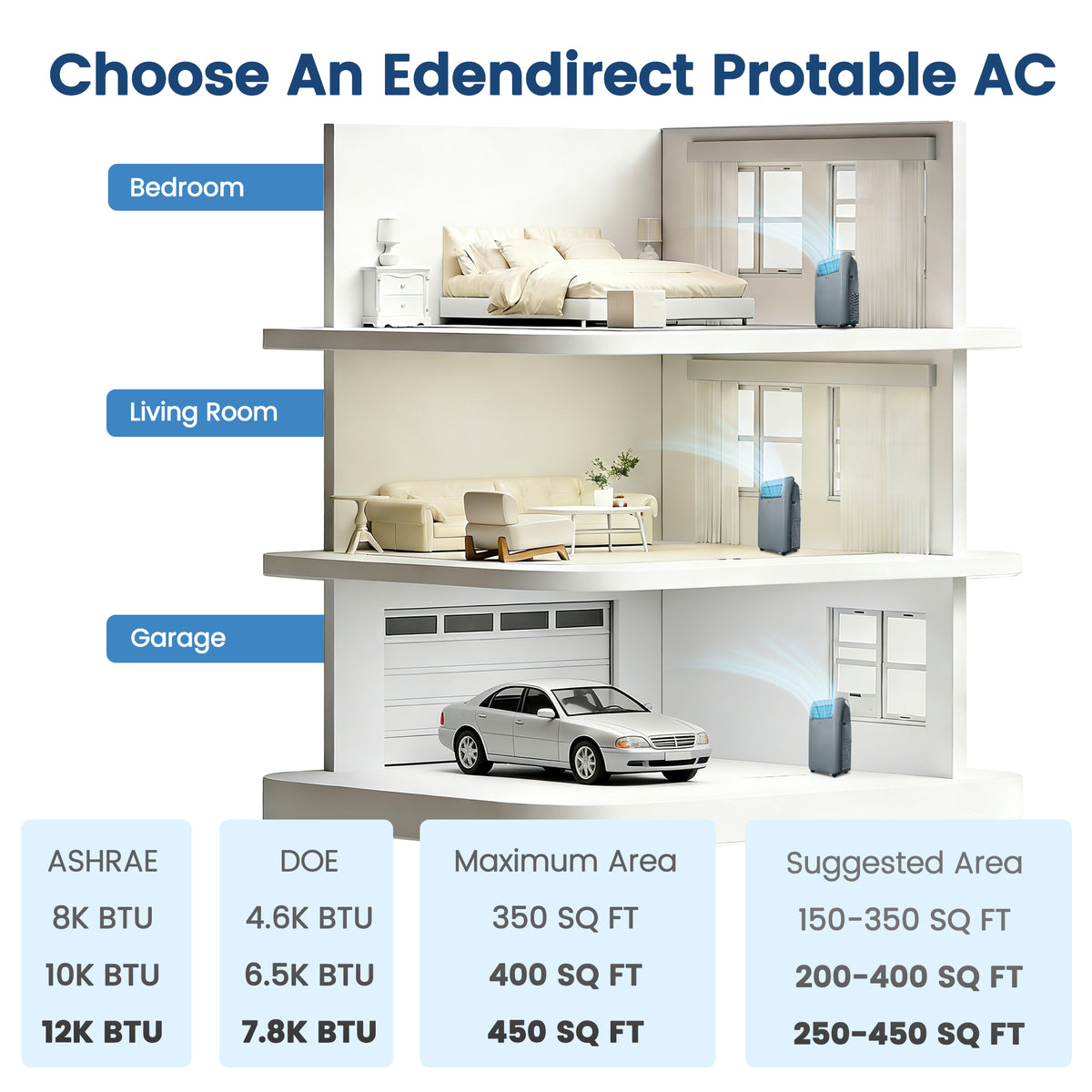 Introducing the year-round climate solution from EdenDirect-Shinco. This powerful 4-in-1 portable unit combines a 10,000 BTU (ASHRAE) / 6,450 BTU (DOE) air conditioner with a robust 10,000 BTU heater, a high-capacity dehumidifier, and a fan—all in one sleek, mobile package. Designed to efficiently cool and heat spaces up to 400 square feet, it offers ultimate versatility for any season. With simple plug-in operation, a complete window installation kit, and digital remote control, it delivers convenient, whole-room comfort for your home, office, or business.