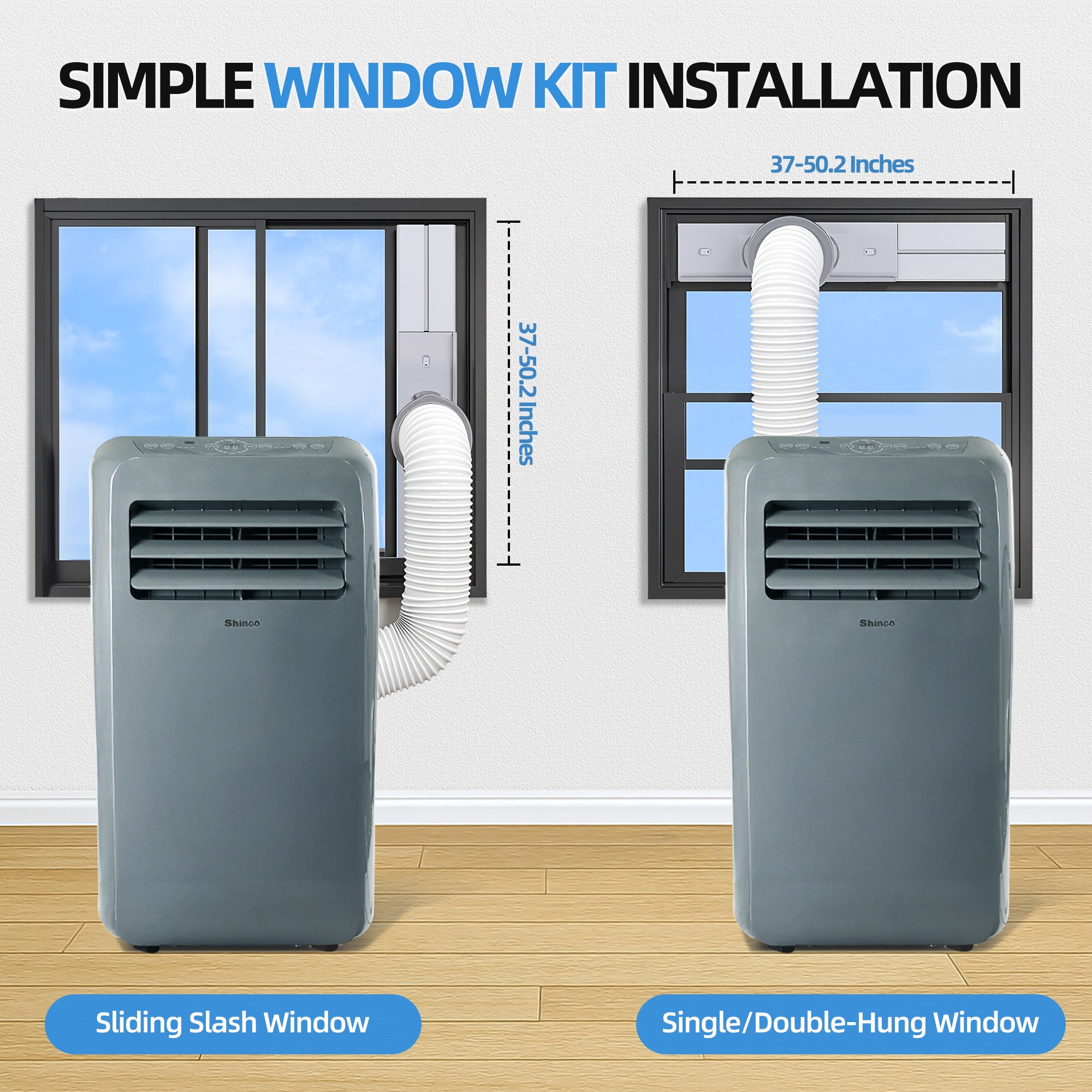 - Complete Installation and Safety: Includes everything for setup: window panels, exhaust hose, drain hose, and casters. Equipped with automatic shutoff and overload protection.
