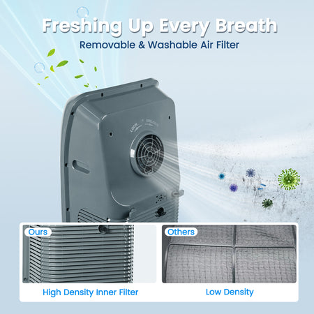 - Easy Maintenance and Air Quality: Includes a removable and washable air filter to ensure optimal performance and efficiency.