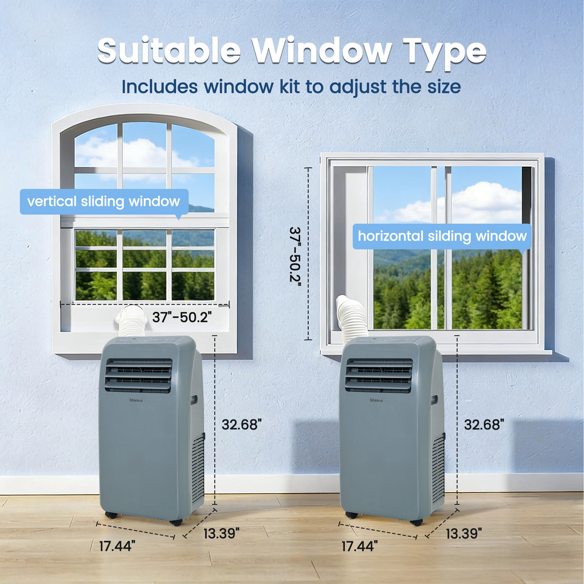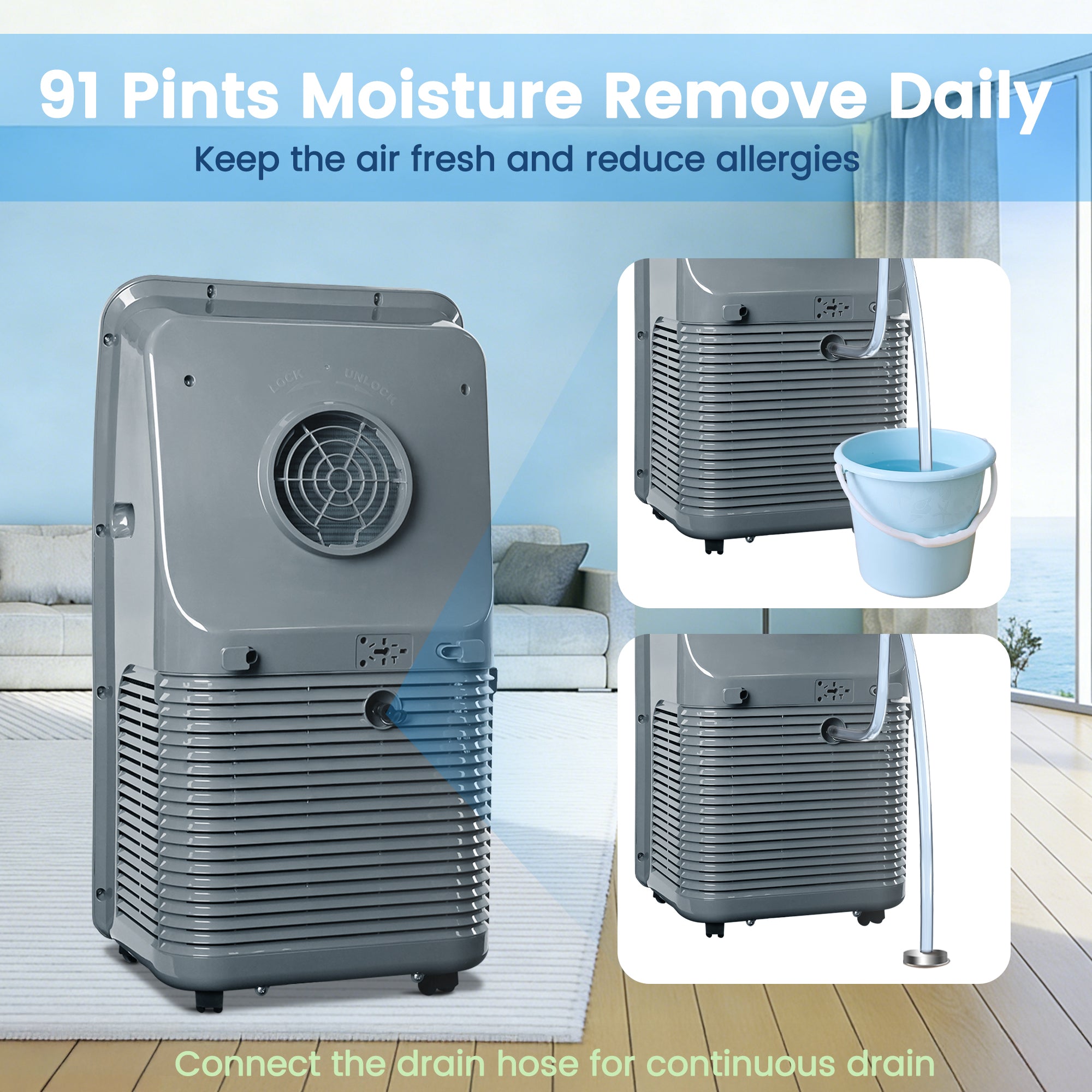 - Complete Installation and Safety: Includes everything for setup: window panels, exhaust hose, drain hose, and casters. Equipped with automatic shutoff and overload protection.