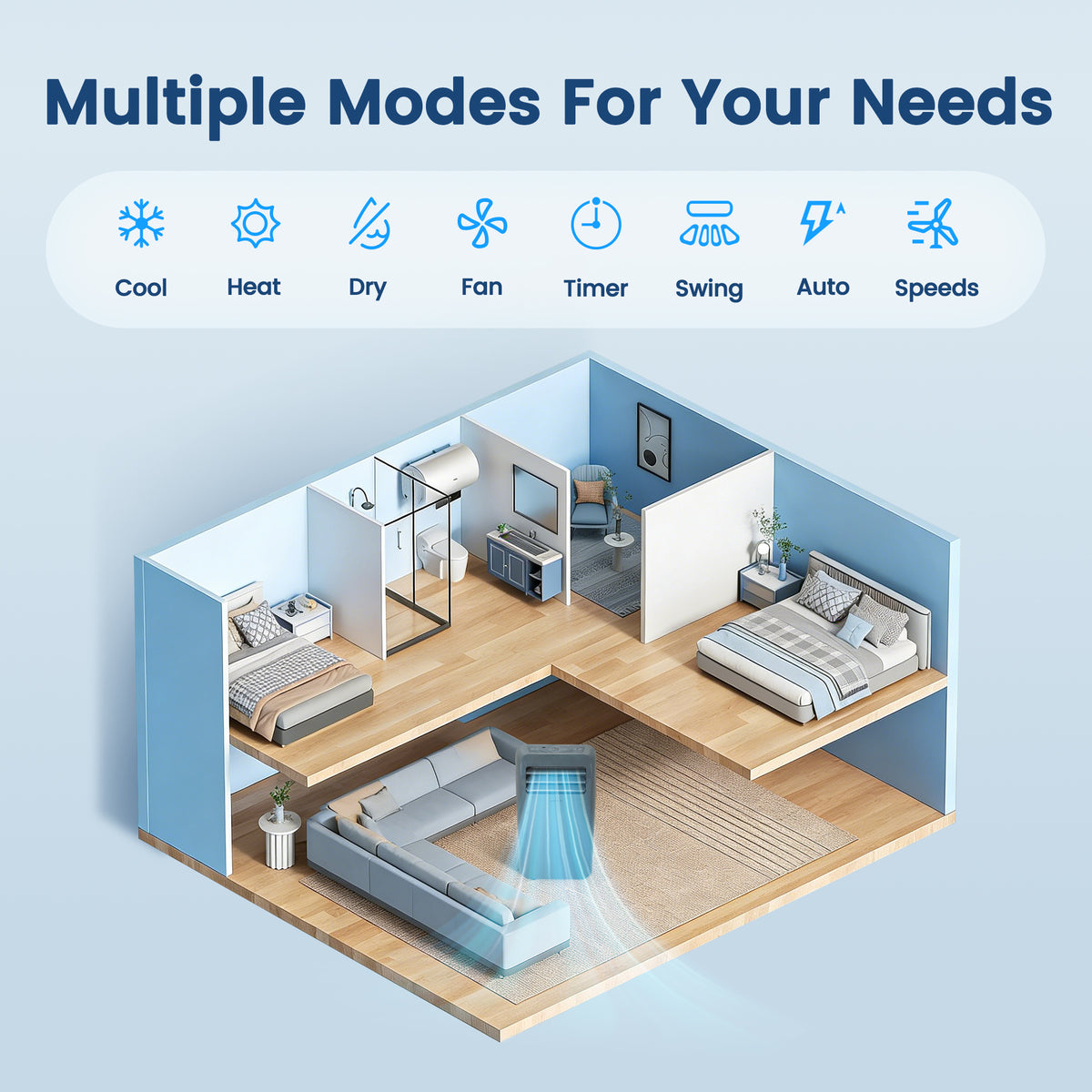 - Expanded Comfort Coverage: Effectively cools, heats, and dehumidifies larger rooms up to 450 square feet.