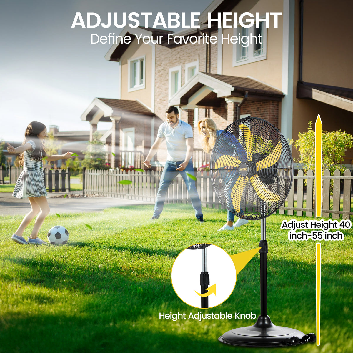 20 in. 3-Fan Speeds Pedistal Fan in Yellow with Powerful 1/3 HP Motor, Commercial or Industrial Fan
