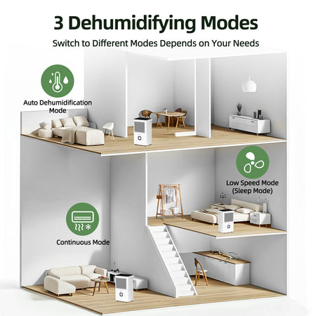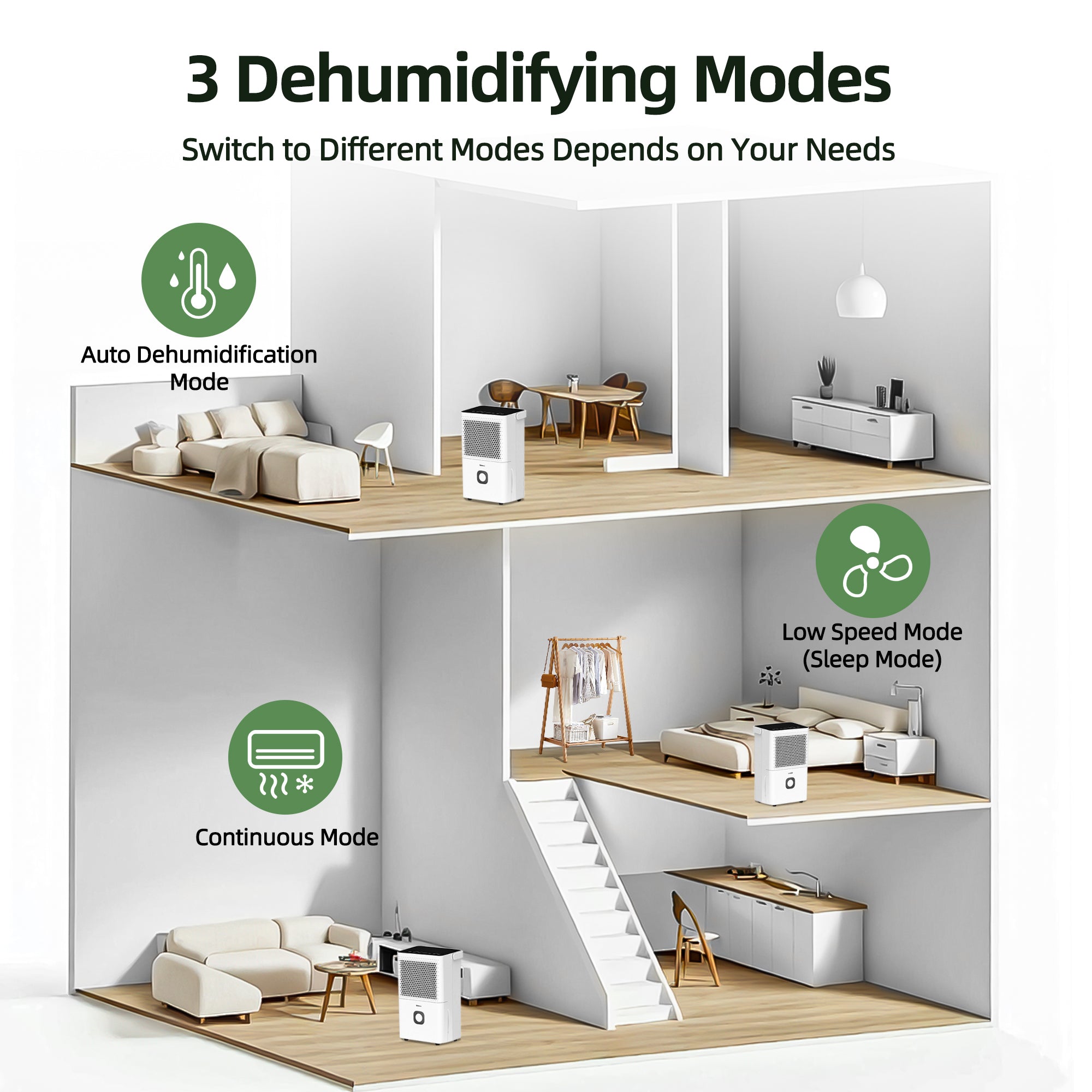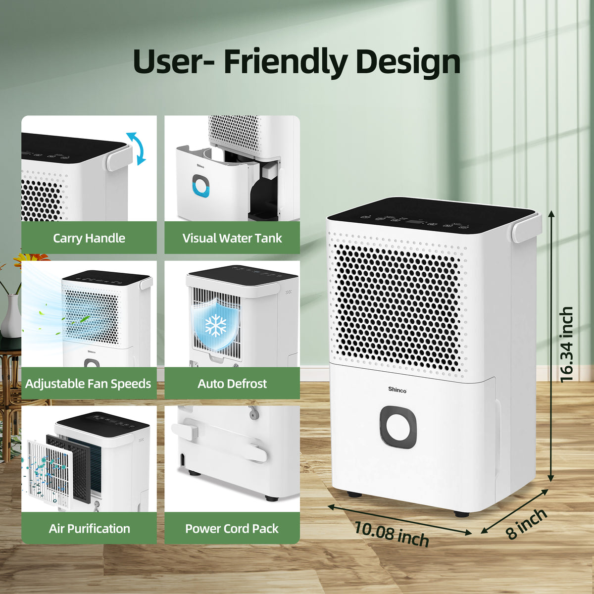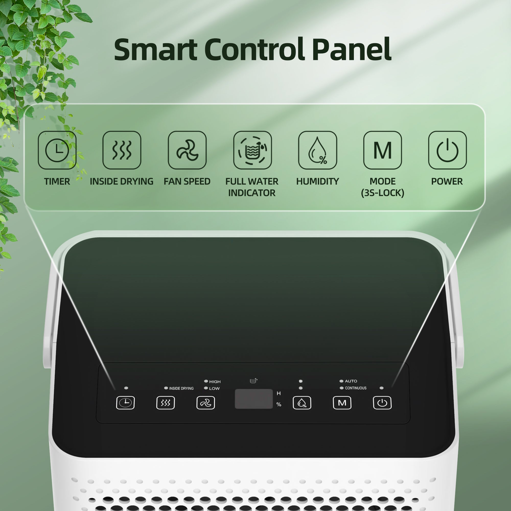 - 【Upgraded Smart Features】Auto-Defrost, Self-Dry, Continuous Run, 24-Hour Timer, Automatic Shutoff, 2 Fan Variable Speeds, Adjustable Humidistat, Child-Lock, and Bucket Full Indicator for optimal performance with minimal effort.