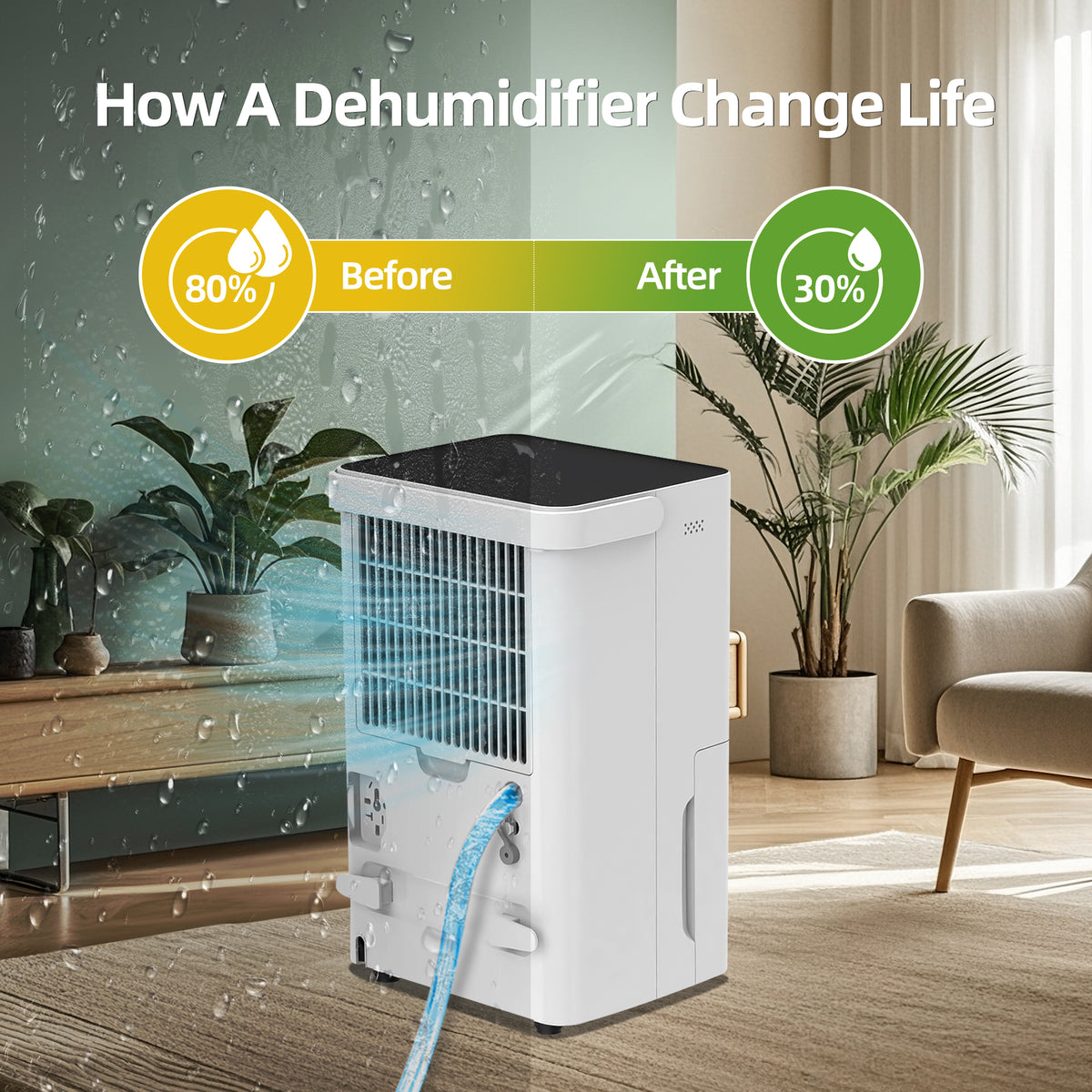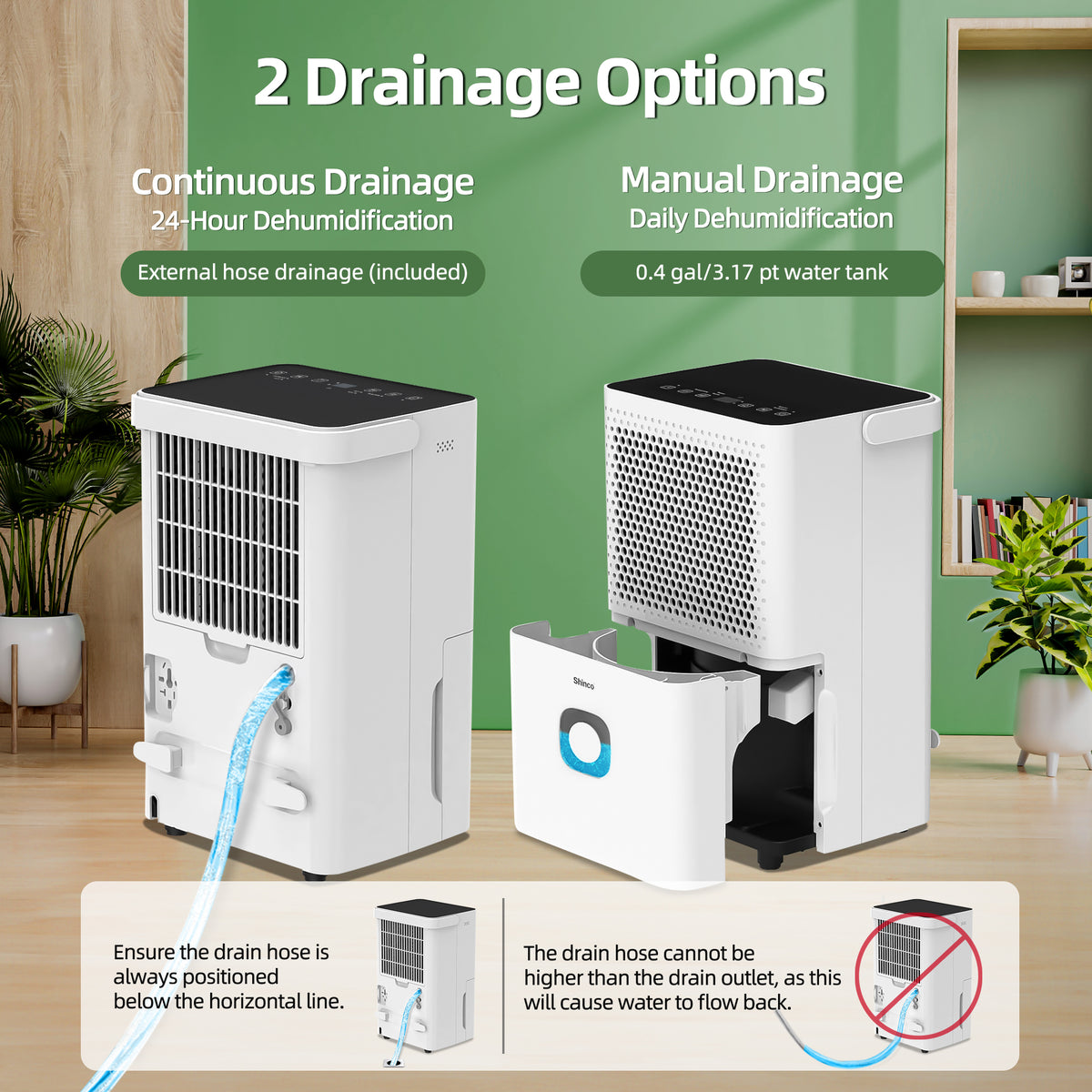 - 【2 Flexible Drainage Options】Choose continuous gravity drain or manual bucket (1.5L/0.4Gal/3.17Pints capacity) for hassle-free moisture management. Connect the included 23.6" hose for auto-drains directly to floor drains.