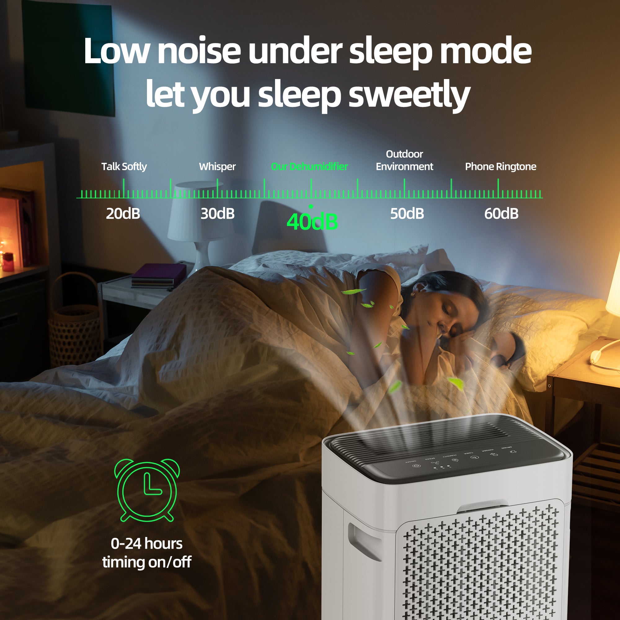 - 【Auto defrosting】 when the room temperature is lower than 45℉, our dehumidify will automatically defrost with indicator light on no worries on ice buildup on the coils, it can cause the units to malfunction the unit works continuously and efficiently without periodic stopping during the defrosting process not only saving the energy but also making the unit last longer