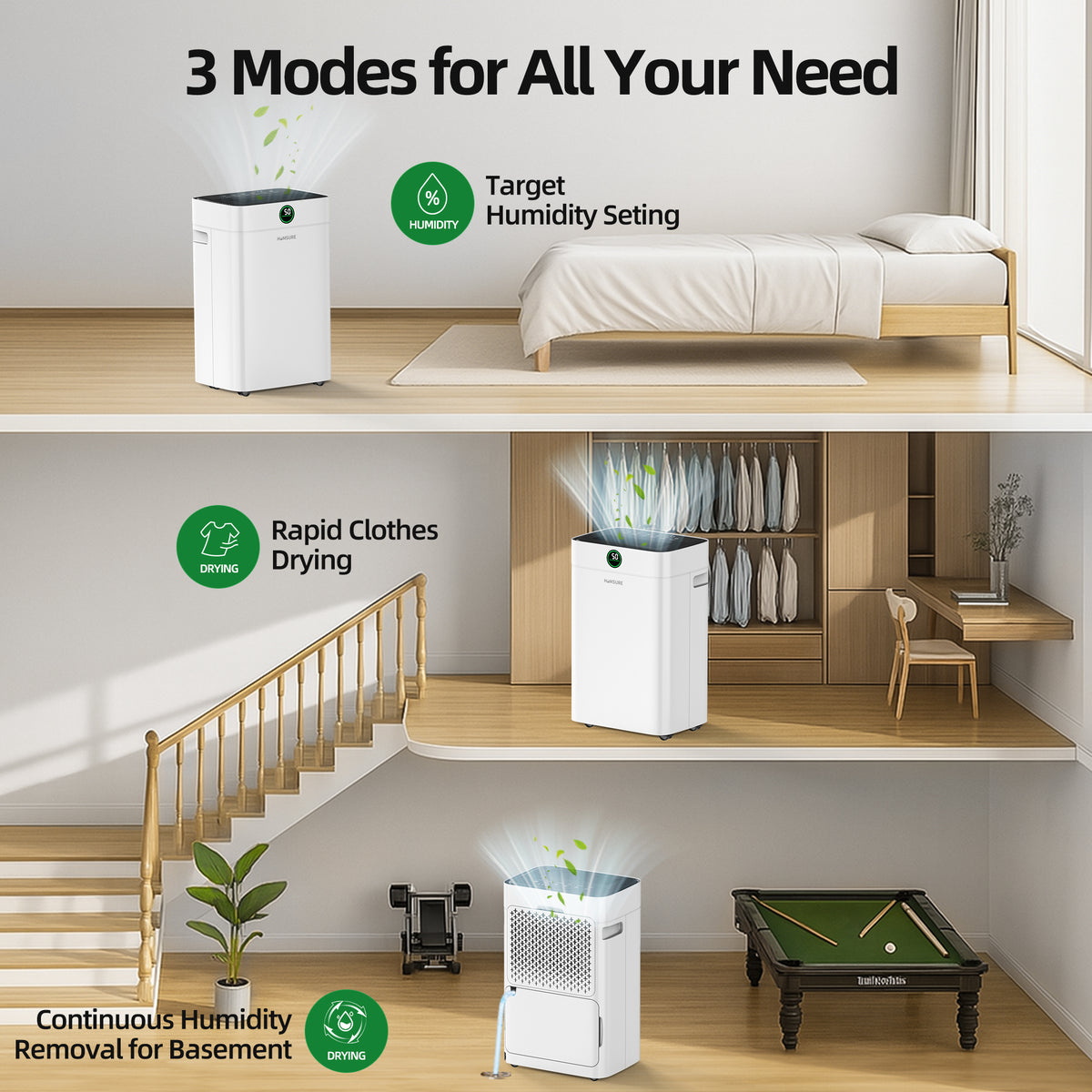 - 【Multi-function in dehumidify】 3-speed fan adjustment could effect the rapid of dehumidify (low, medium and high) after making sure the drainage prepared well, 0-24 hr setting allows you to set automatic on and off now, you can concentrated on your own business clothes drying mode let you flat clothes dry in short time