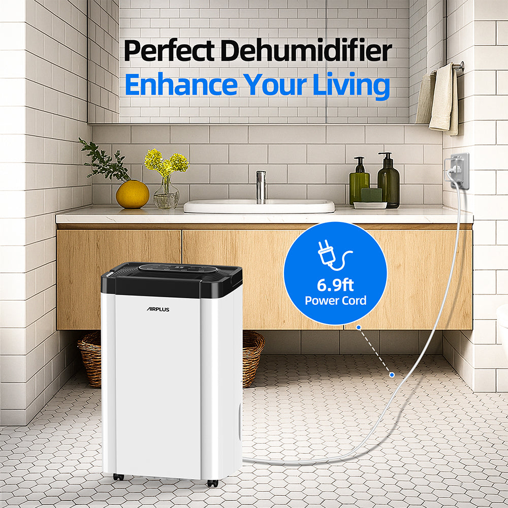 - 【Easy to Move】Equipped with four caster wheels and an easy-lift handle, along with a generous 6.9-foot power cord, this dehumidifier can be effortlessly relocated to any spot you need.