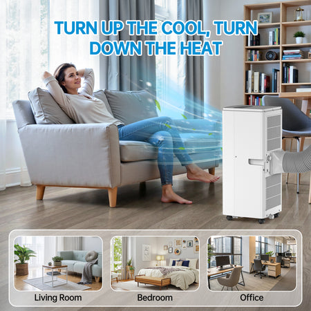 Equipped with an efficient and powerful rotary compressor, our portable air conditioners fight the heat like a beast and provide you unrivalled coolness within 8 minutes. 8,000 BTU (ASHRAE) cooling capacity blows(4,800 BTU DOE) cold that reaches as far as 20 ft. and cool for rooms up to 200 sq. ft. It's the ideal affordable air conditioner for dorms, apartments, campers, offices, kitchens, garages, bedrooms, or living rooms. It is pleasing to the eyes, no matter what room you put it in will fit in with decor, simplistic and clean line design.