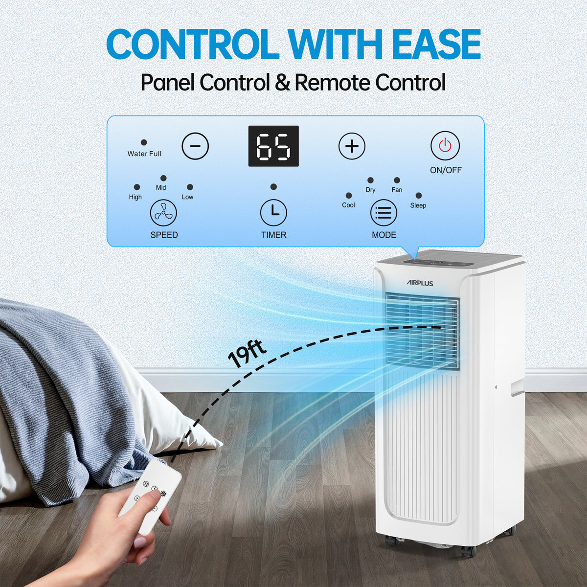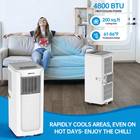 4800 BTU (DOE) Portable Air Conditioner Cools 200 sq. ft. with Dehumidifier, Remote, Sleep Mode, with Window Kit Panel