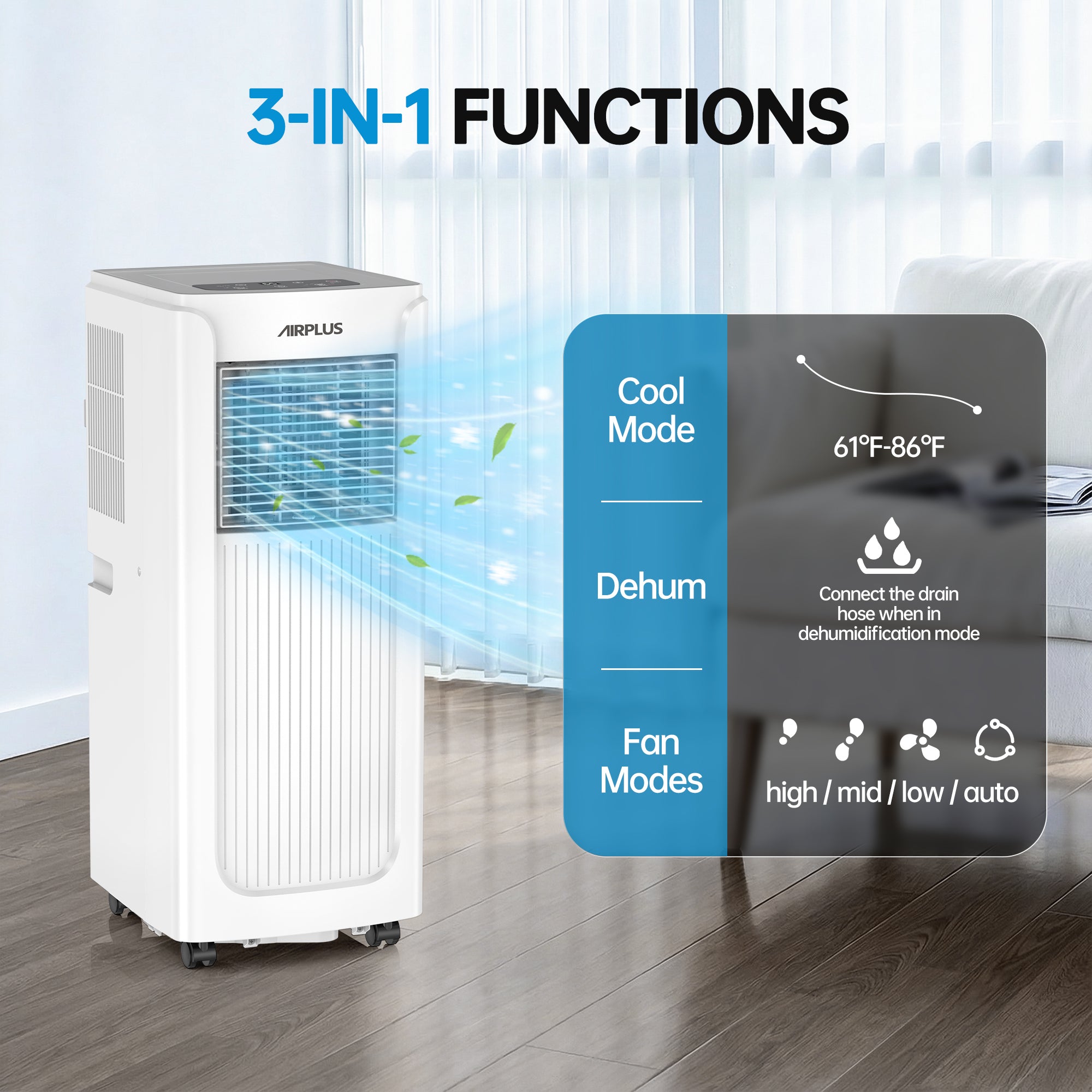 - 4 Operation Modes: Cool, Dehumidify, Fan, and Sleep modes. It delivers 8,000 BTU/h (ASHRAE) / 4,800 BTU/h (SACC) of cooling, automatically cycling the compressor to maintain your set temperature between 61-86°F.