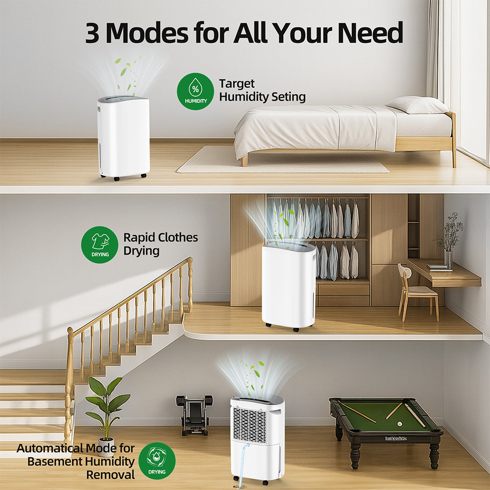 - 【3-Mode for all your needs】Continuous Run Mode (also the same as Dry Cloth), Hum Set Mode that can be adjusted from 95% to 20%. And the most practical one is automatic mode. It can automatically adjust wind speed according to the ambient humidity.