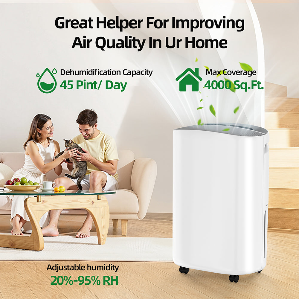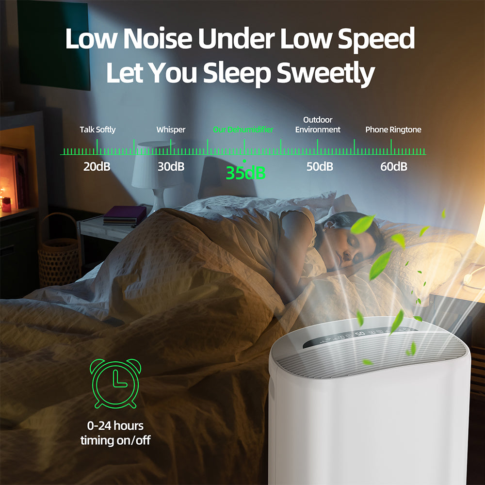 Edendirect is a brand specializing in home appliances. It is a young and passionate brand. We are committed to providing customers with high-quality product quality and service. It is a pleasure to meet you here. This 1 is different from others on the market, and there is a display real time ambient humidity. Its small and round shape makes it cute and beautiful in every corner of the home. 50 pint of dehumidify capacity (95℉, 90%RH), the largest covered area up to 4,000 sq. ft., and its noise is less than 45 dB, very suitable for small rooms, bedroom, offer you comfortable and sweet sleeping environment.