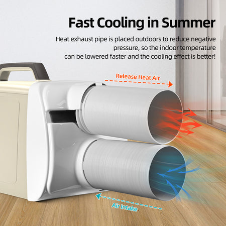 Whether it's a hot summer or a humid environment, this portable air conditioner will bring you a cool experience beyond imagination. Its 5500 BTU cooling capacity can effectively cool a space of 175 square feet, allowing you to enjoy spring-like comfort in the hottest weather. 1-touch start and convenient operation. Equipped with a digital display and remote control, you can adjust the temperature, wind speed and operation mode at any time, and easily achieve personalized settings. The specially designed sleep mode automatically adjusts the temperature at night, bringing a quiet and comfortable sleeping environment, so that you can say goodbye to the troubles of heat completely.