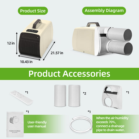 - Easy installation simply tighten the screws with the included screwdriver to secure the air outlet and adapter port, then connect the exhaust pipe to the adapter, turn on the portable air conditioner to enjoy the bliss of instant cooling, all necessary accessories are included in the package: adapter, remote control, instruction manual, drain pipe, 60 in. exhaust pipe, screws and drain protection plug, if you have any questions, please feel free to contact us, you will get the best solution from our professional service team in a timely manner to make your cooling experience perfect