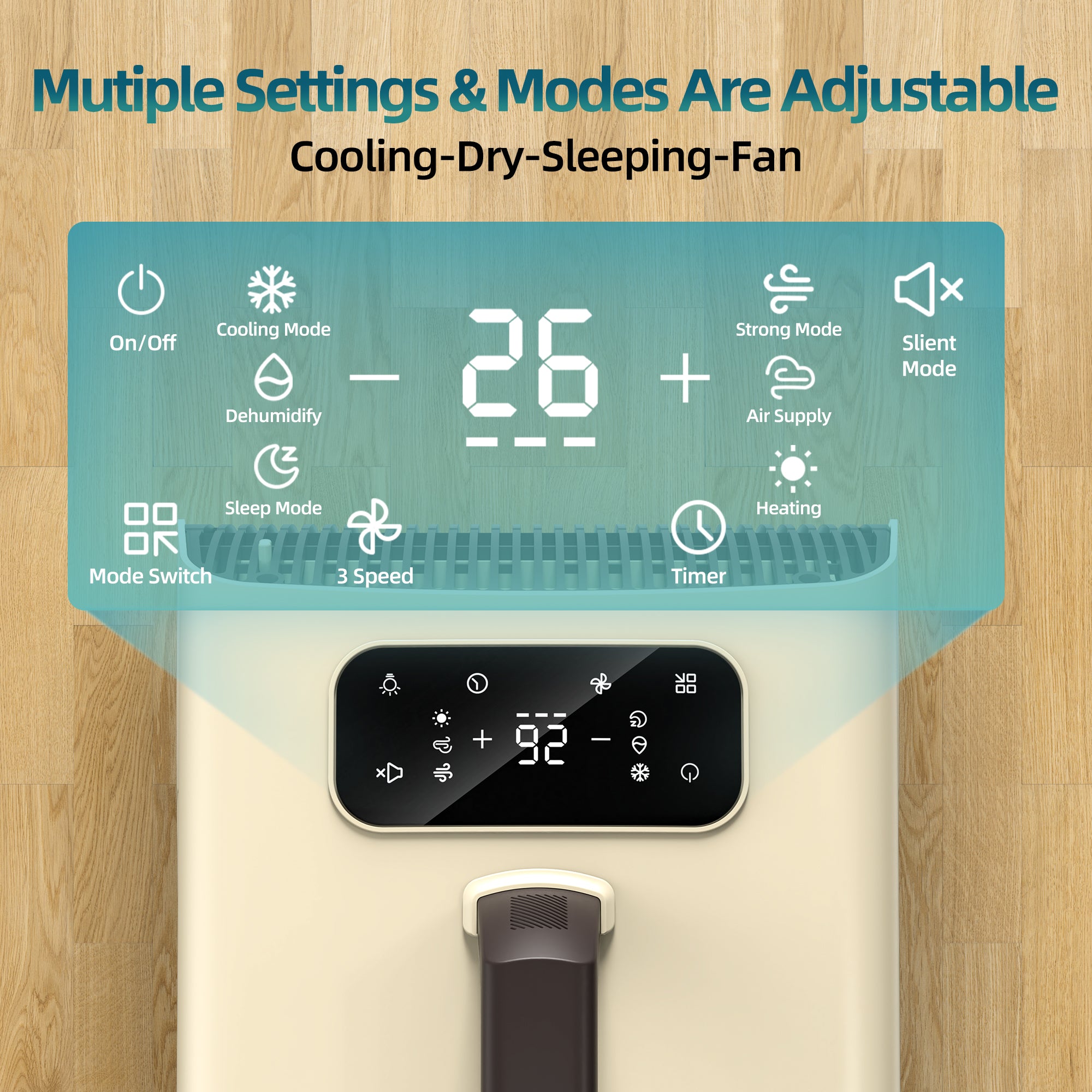 - Convenient control: with its easy-to-use intelligent control panel and clear remote, you can quickly and easily set the mode, fan speed, timer and temperature to your desired level, the portable air conditioner also can control through voice: you can wake up the machine directly with the specified password, and then control it by voice(please refer the user manual)