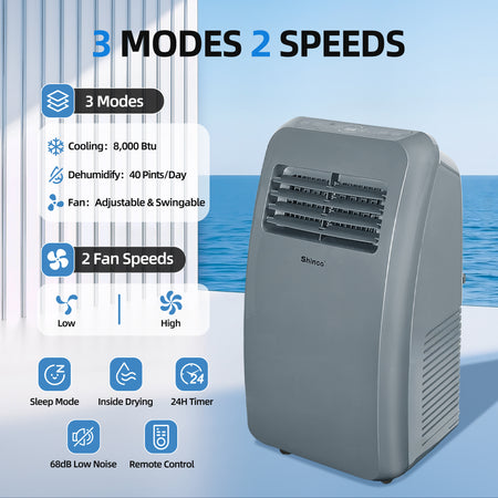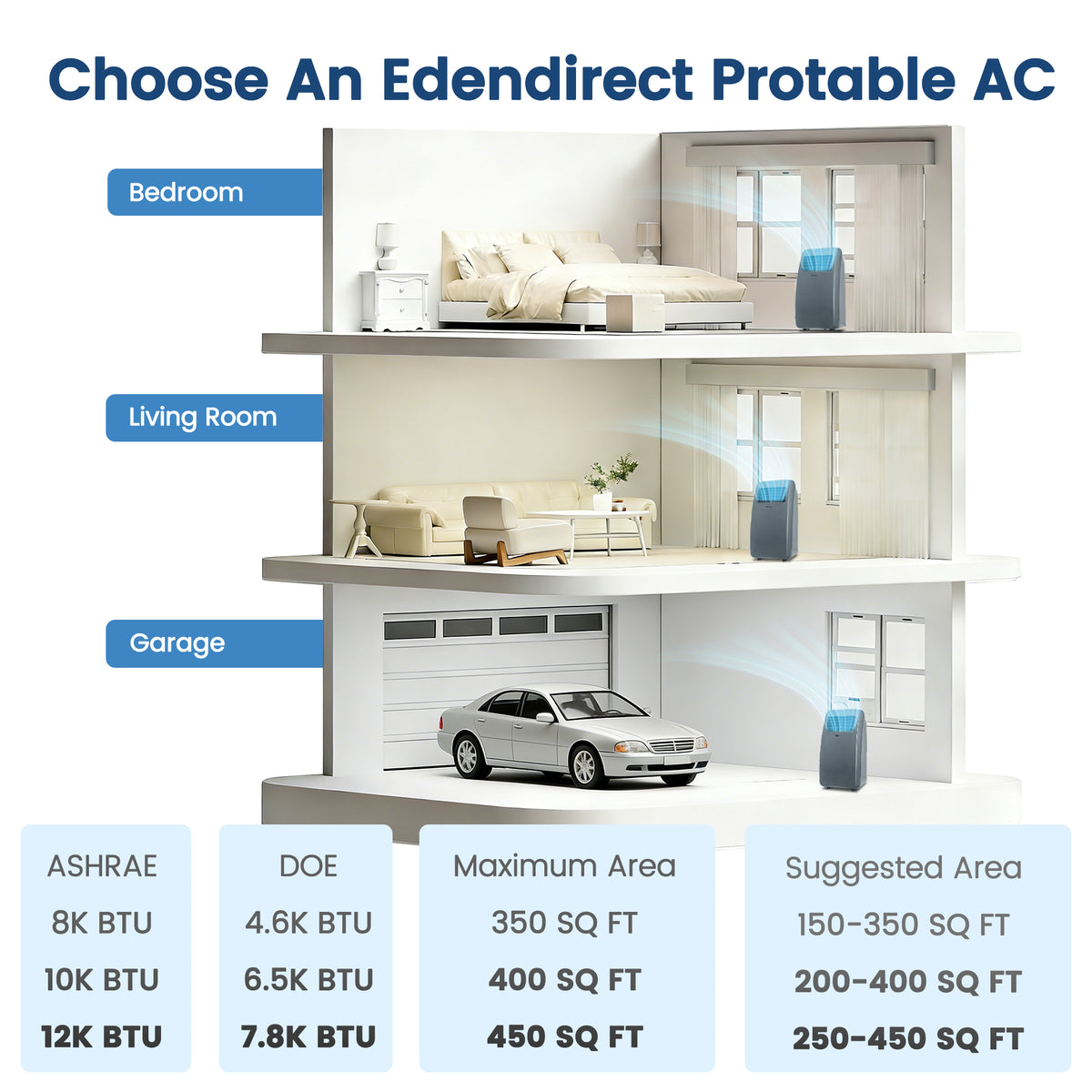Beat the heat with our powerful and versatile EdenDirect-Shinco Portable Air Conditioner. This compact unit delivers 8,000 BTU (ASHRAE) / 4,550 BTU (DOE SACC) of cooling power to efficiently comfort your space. With three operation modes—Cooling, Dehumidification, and Fan—it's your all-in-one climate solution. Easy to move and install, it comes complete with a window venting kit and remote control for convenient, wide-area climate management. Ideal for homes, offices, or dorms.